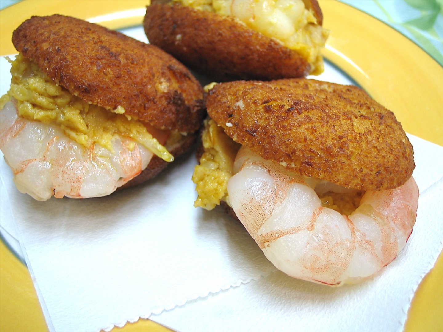 と口幅ったく書いたのには訳があります。といいますのも、ボリンニョと名付けられたお料理は、その名の通り、ボール型すなわち丸型であることが必須となっていて、逆を言えば白身魚のすり身以外を丸めたものでも、あるいは素揚げではなくきちんと衣が付けられたものでも、丸ければボリンニョと呼ばれるからなんですね。特に多いのがまん丸なコロッケで、こちらは素揚げではなくパン粉の衣もきっちり纏ったフライ。
